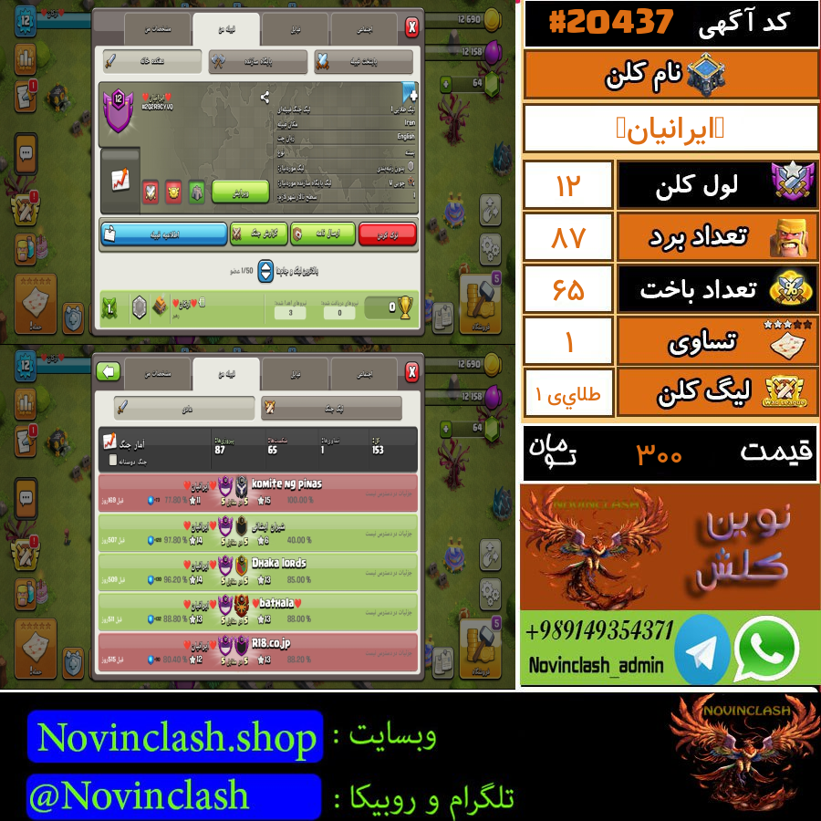 • فروش کلن کلش اف کلنز لول 12 کد 20437
