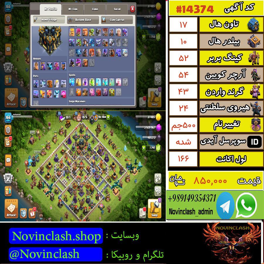 • خرید اکانت کلش اف کلنز تانهال 17 لول 166 کد 14374