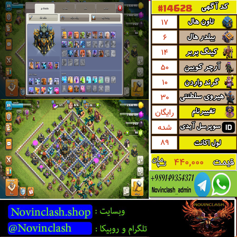 • خرید اکانت کلش اف کلنز تانهال 17 لول 89 کد 14628