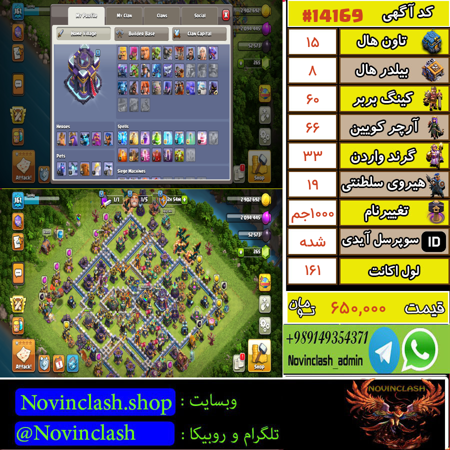 • خرید اکانت کلش اف کلنز تانهال 15 لول 160 کد 13989