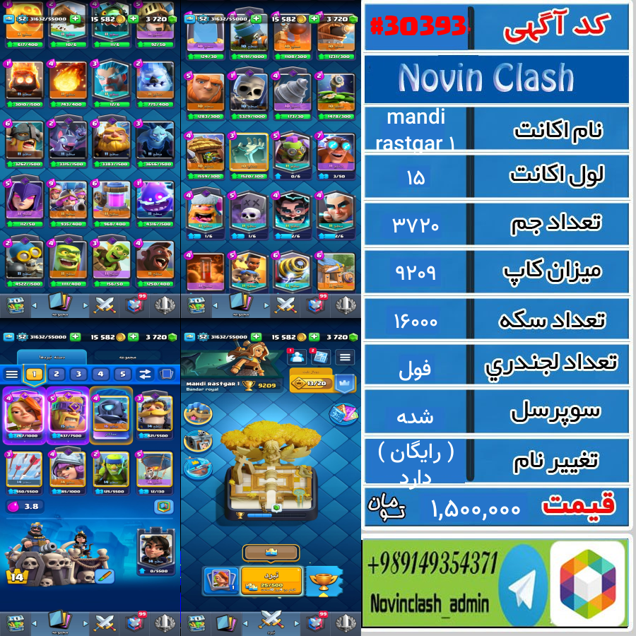 • خرید اکانت کلش رویال لول 15 کد 30393