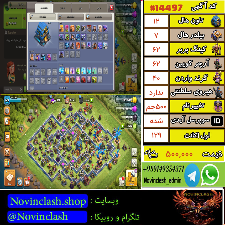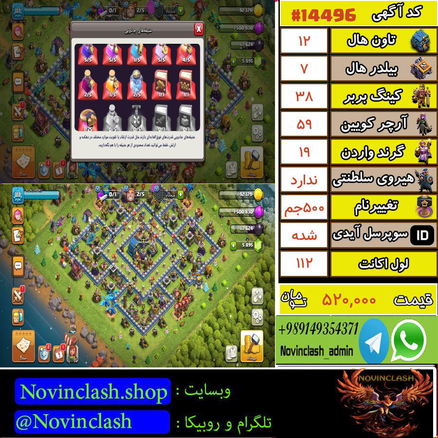 خرید اکانت کلش اف کلنز تانهال 12 لول 92 کد 14537قبل از اقدام به خرید و فروش حتماً قوانین سایت را مطالعه کنید.