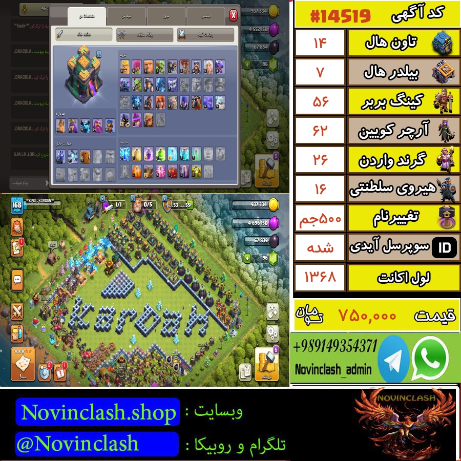 خرید اکانت کلش اف کلنز تانهال 14 لول 153 کد 14539قبل از اقدام به خرید و فروش حتماً قوانین سایت را مطالعه کنید.