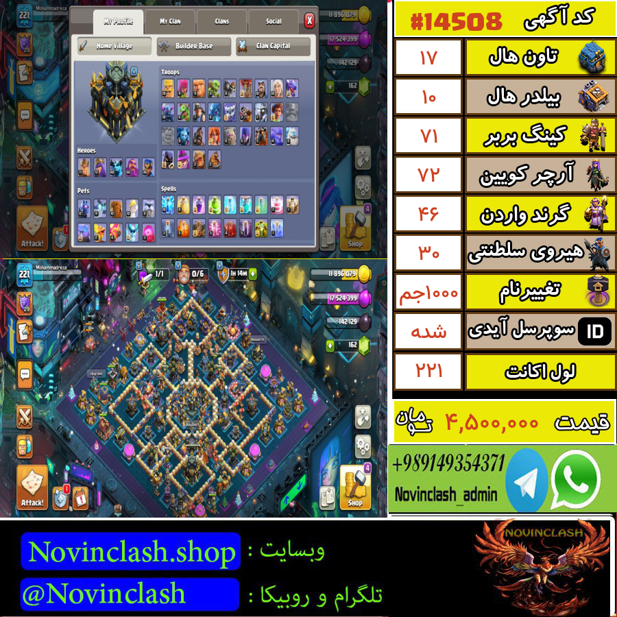 خرید اکانت کلش اف کلنز تانهال 17 لول 221 کد 14538قبل از اقدام به خرید و فروش حتماً قوانین سایت را مطالعه کنید.
