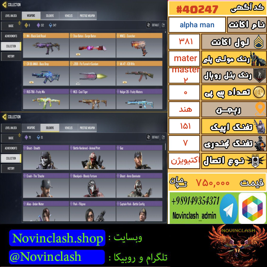 خرید اکانت کالاف دیوتی لول 381 کد 40247 (0نفر)