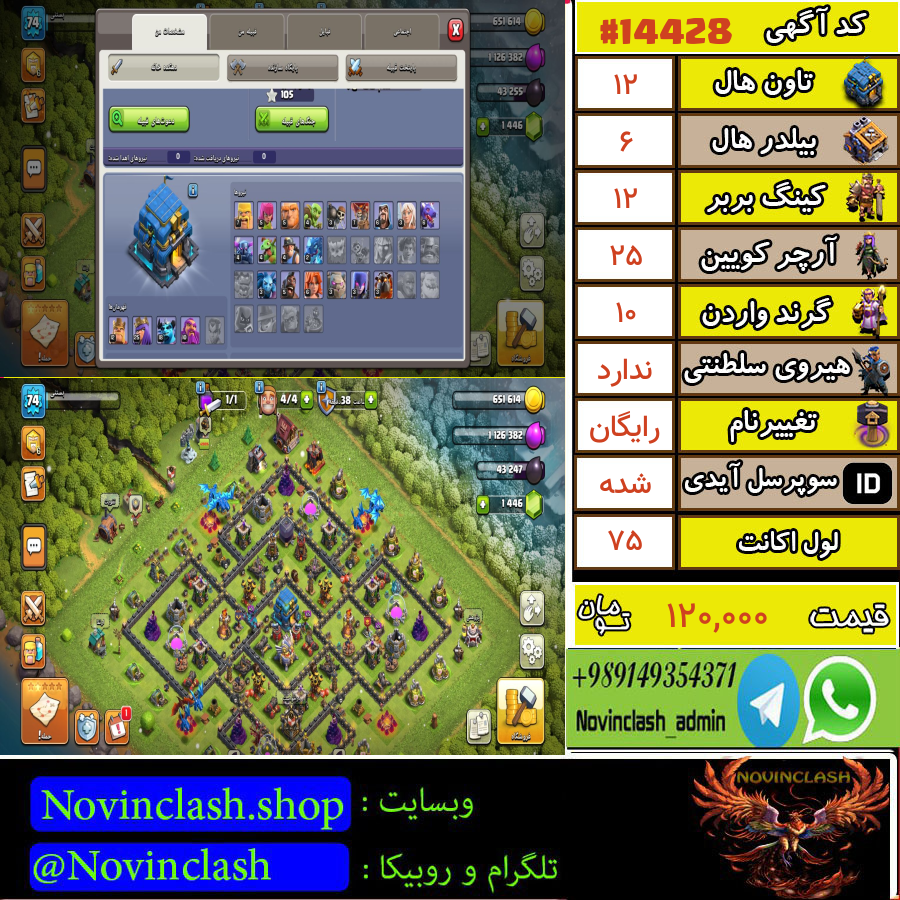 خرید اکانت کلش اف کلنز تانهال 12 لول 75 کد 14428قبل از اقدام به خرید و فروش حتماً قوانین سایت را مطالعه کنید.