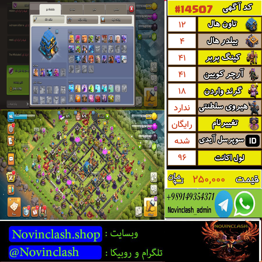 خرید اکانت کلش اف کلنز تانهال 12 لول 92 کد 14537قبل از اقدام به خرید و فروش حتماً قوانین سایت را مطالعه کنید.