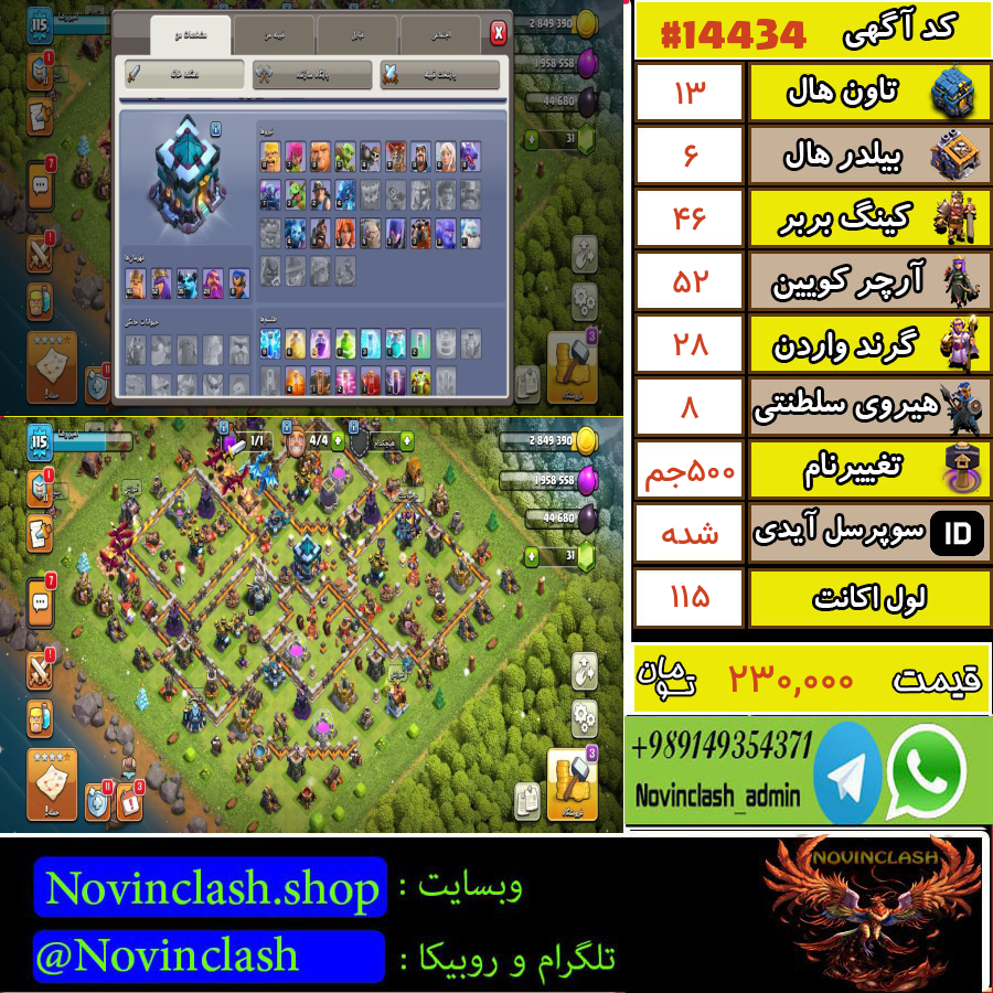 خرید اکانت کلش اف کلنز تانهال 13 لول 115 کد 14434قبل از اقدام به خرید و فروش حتماً قوانین سایت را مطالعه کنید.