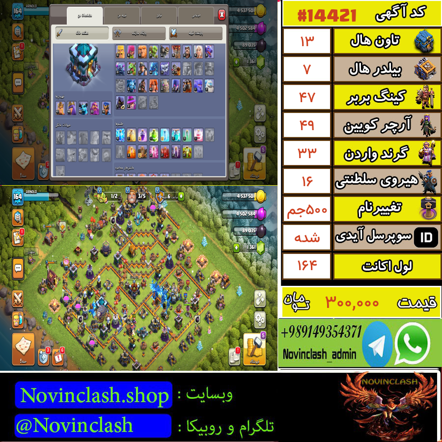 خرید اکانت کلش اف کلنز تانهال 13 لول 164 کد 14421قبل از اقدام به خرید و فروش حتماً قوانین سایت را مطالعه کنید.
