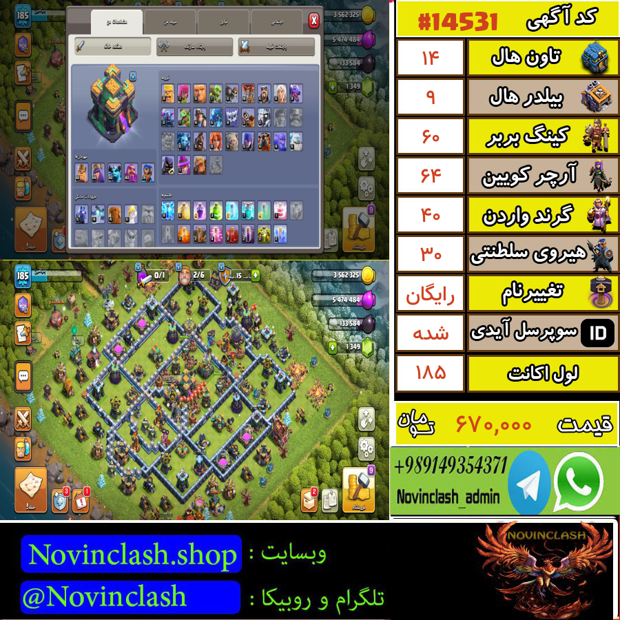 خرید اکانت کلش اف کلنز تانهال 14 لول 138 کد 14544قبل از اقدام به خرید و فروش حتماً قوانین سایت را مطالعه کنید.