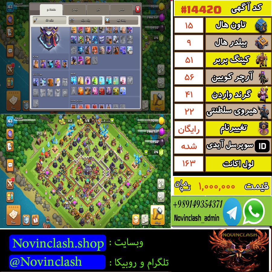 خرید اکانت کلش اف کلنز تانهال 15 لول 163 کد 14420قبل از اقدام به خرید و فروش حتماً قوانین سایت را مطالعه کنید.