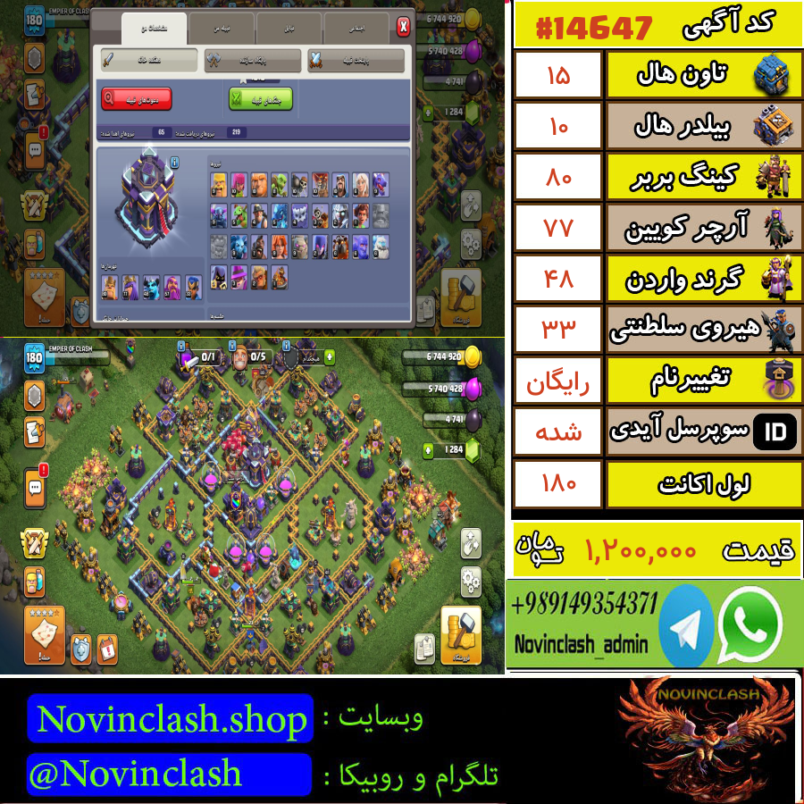 خرید اکانت کلش اف کلنز تانهال 15 لول 180 کد 14647قبل از اقدام به خرید و فروش حتماً قوانین سایت را مطالعه کنید.