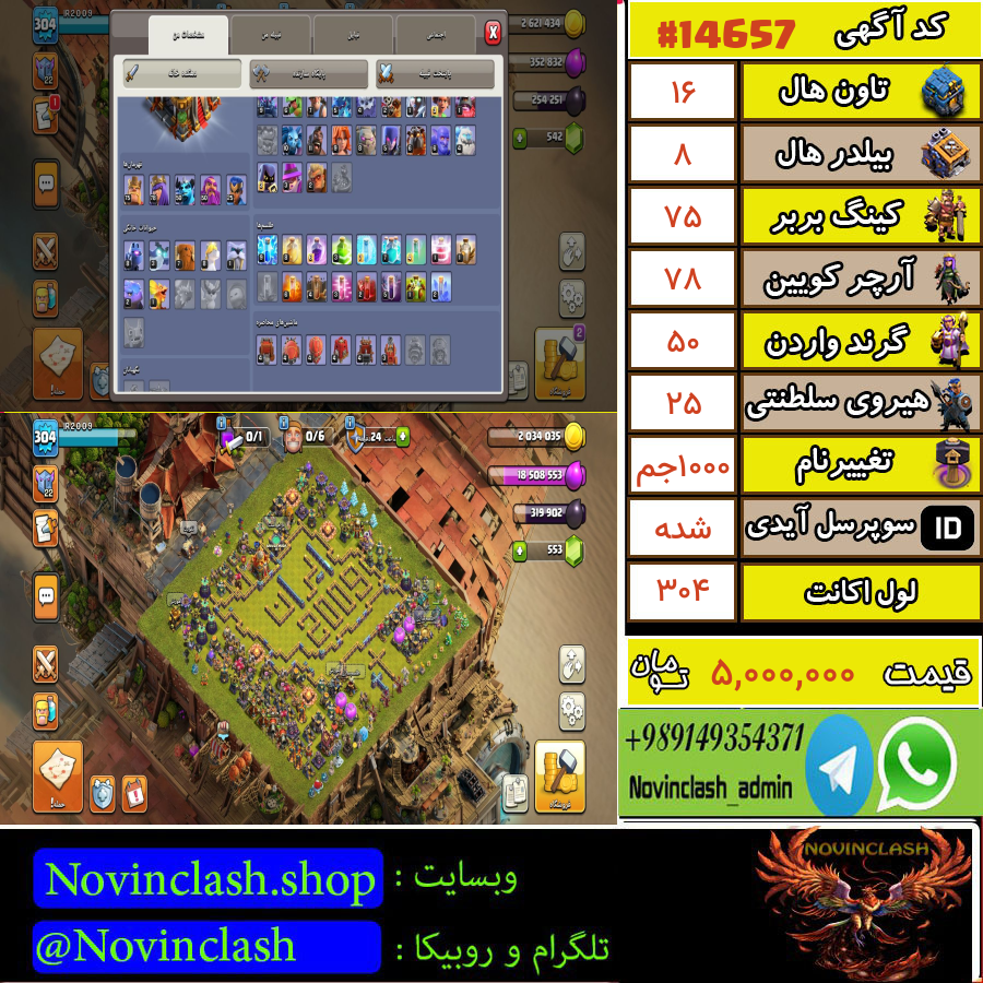 خرید اکانت کلش اف کلنز تانهال 16 لول 215 کد 14655قبل از اقدام به خرید و فروش حتماً قوانین سایت را مطالعه کنید.