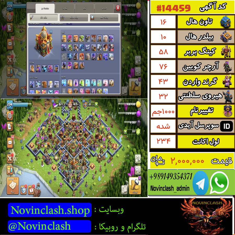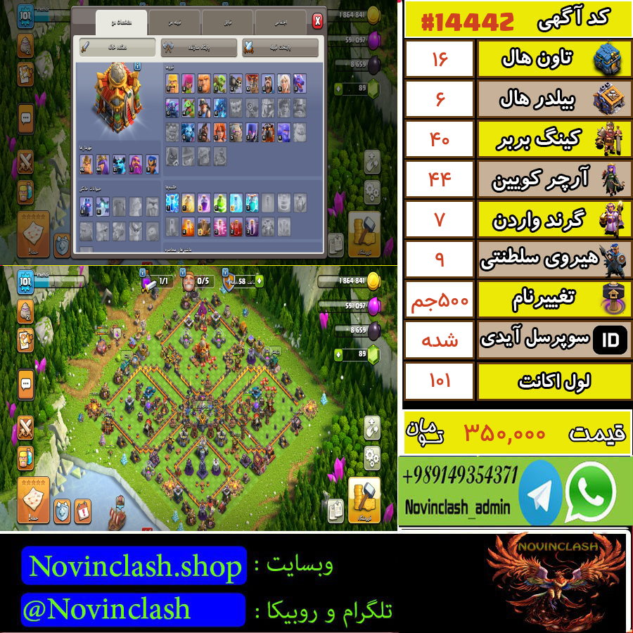 خرید اکانت کلش اف کلنز تانهال 16 لول 234 کد 14536قبل از اقدام به خرید و فروش حتماً قوانین سایت را مطالعه کنید.