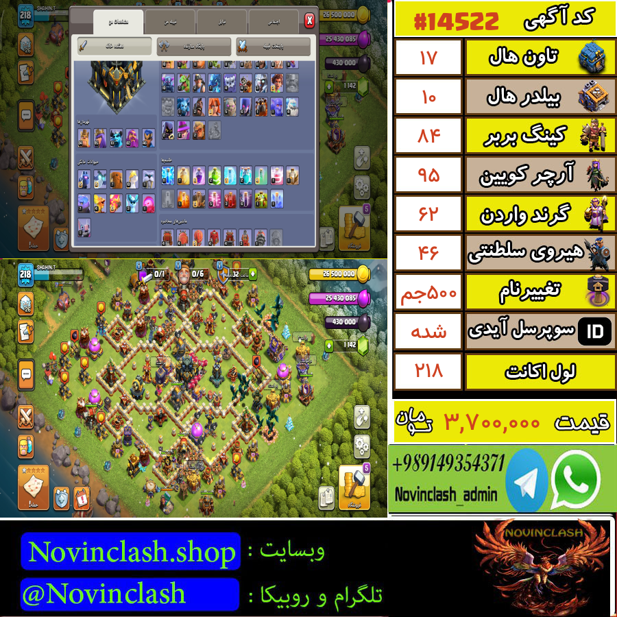 خرید اکانت کلش اف کلنز تانهال 17 لول 221 کد 14538قبل از اقدام به خرید و فروش حتماً قوانین سایت را مطالعه کنید.