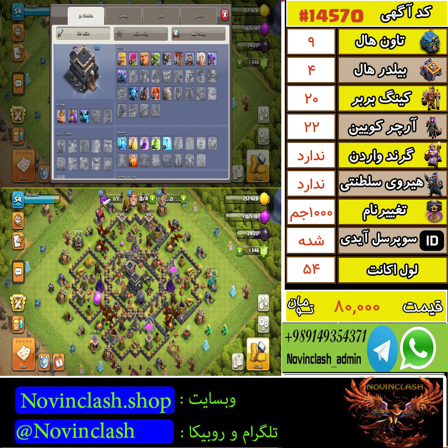 خرید اکانت کلش اف کلنز تانهال 9 لول 54 کد 14570قبل از اقدام به خرید و فروش حتماً قوانین سایت را مطالعه کنید.