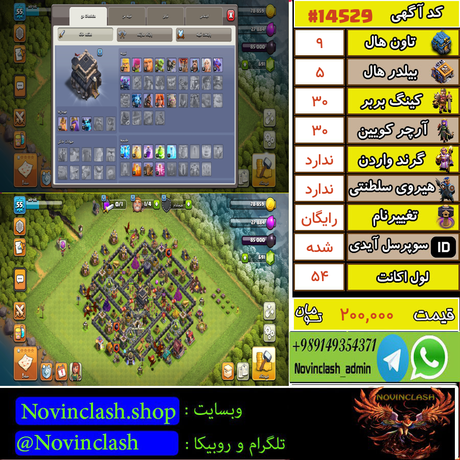 خرید اکانت کلش اف کلنز تانهال 9 لول 54 کد 14570قبل از اقدام به خرید و فروش حتماً قوانین سایت را مطالعه کنید.