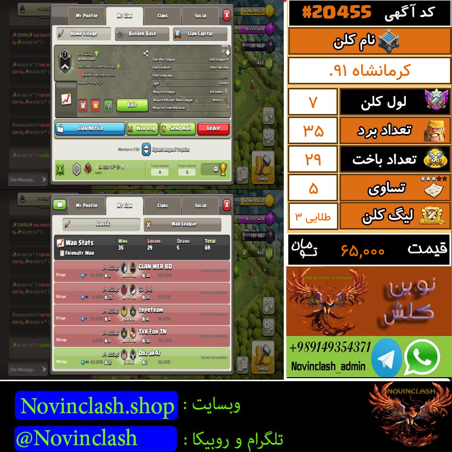 فروش کلن کلش اف کلنز لول 7 کد 20455قبل از اقدام به خرید و فروش حتماً قوانین سایت را مطالعه کنید.