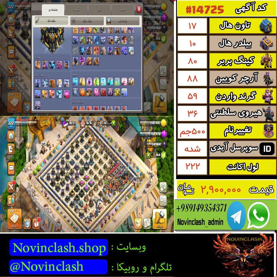 • خرید اکانت کلش اف کلنز تانهال 17 لول 222 کد 14725