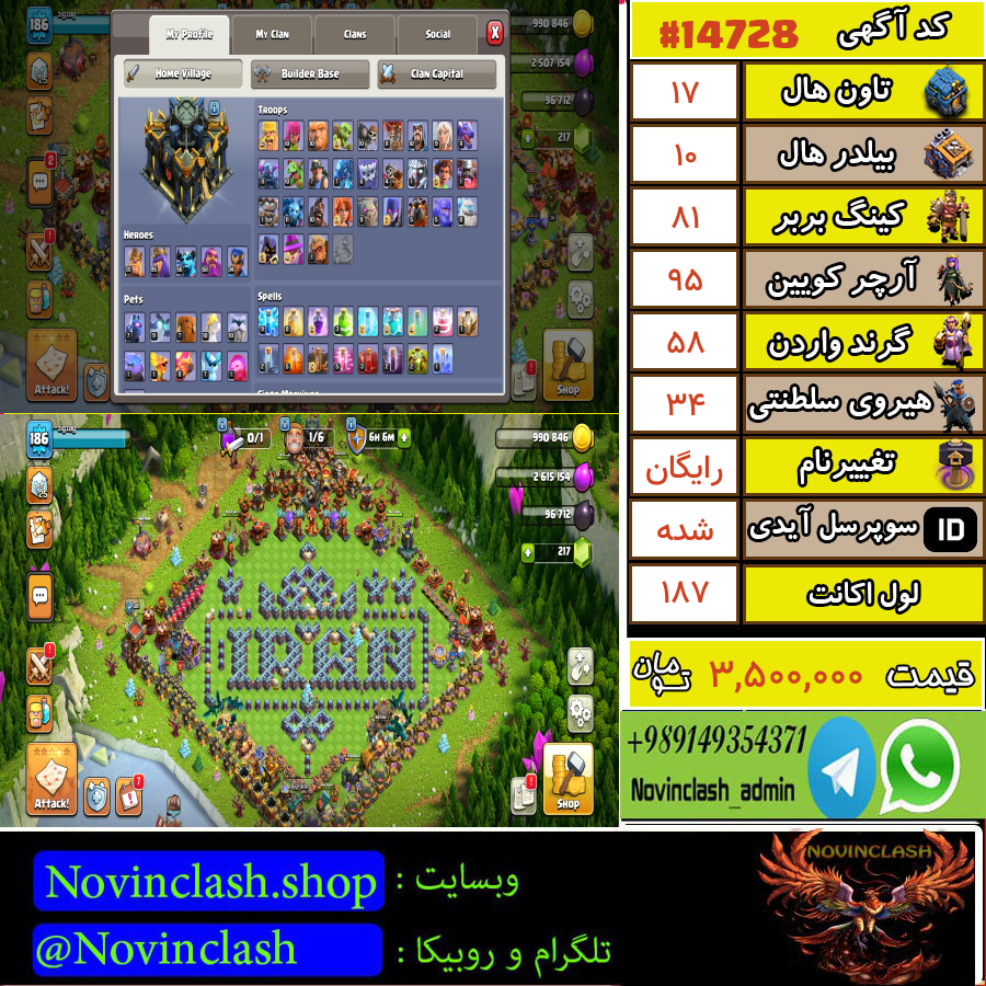 خرید اکانت کلش اف کلنز تانهال 17 لول 187 کد 14728