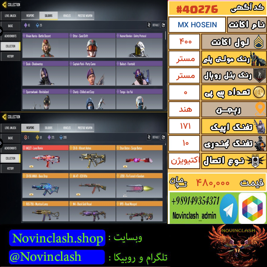 • خرید اکانت کالاف دیوتی لول 400 کد 40276