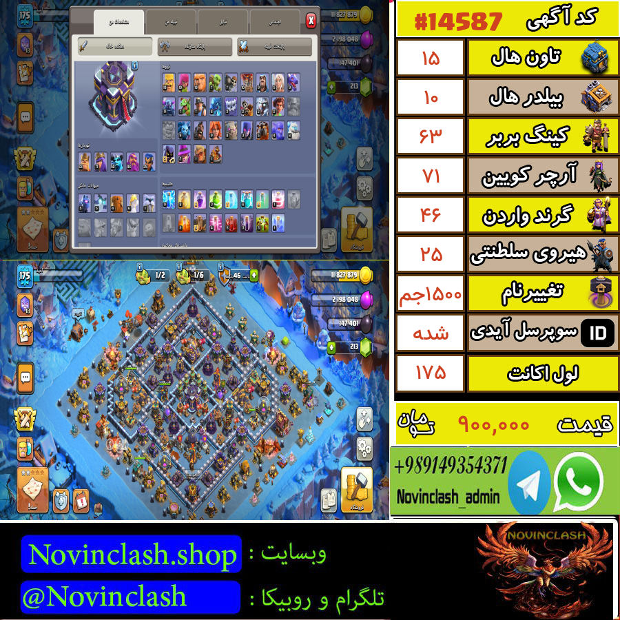 • خرید اکانت کلش اف کلنز تانهال 15 لول 175 کد 14587