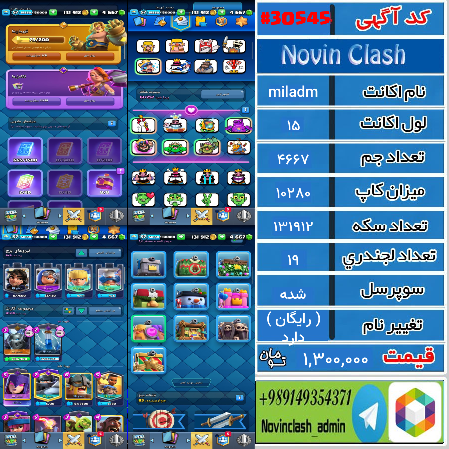 • خرید اکانت کلش رویال لول 15 کد 30545