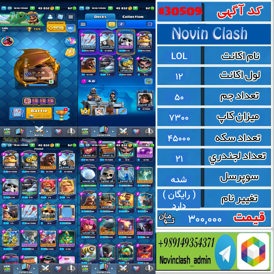 • خرید اکانت کلش رویال لول 12 کد 30509