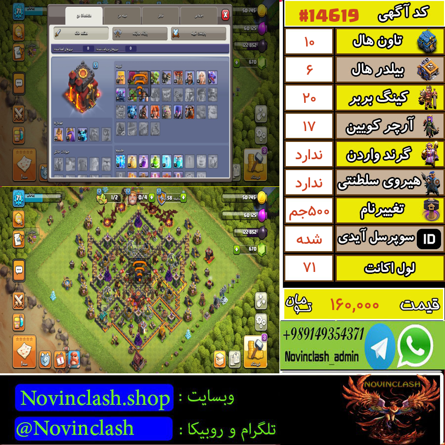 • خرید اکانت کلش اف کلنز تانهال 10 لول 71 کد 14619
