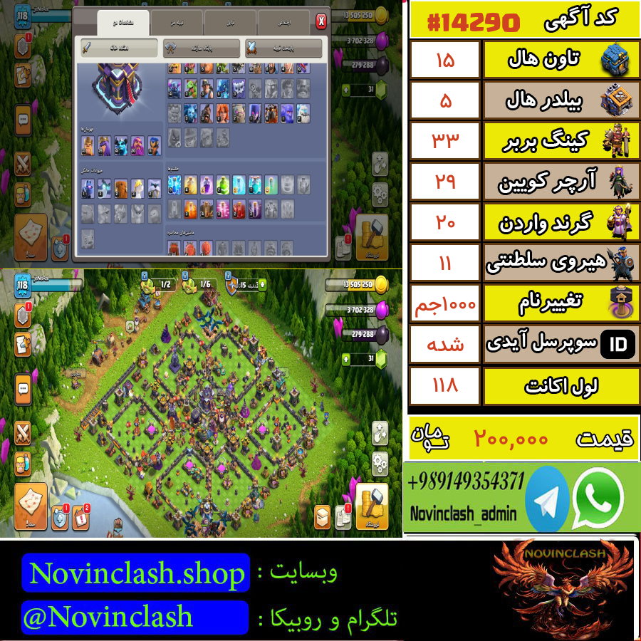 • خرید اکانت کلش اف کلنز تانهال 15 لول 118 کد 14290