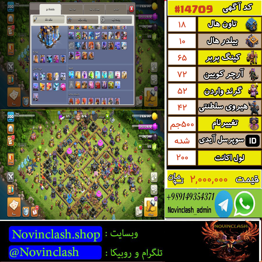• خرید اکانت کلش اف کلنز تانهال 18 لول 200 کد 14709