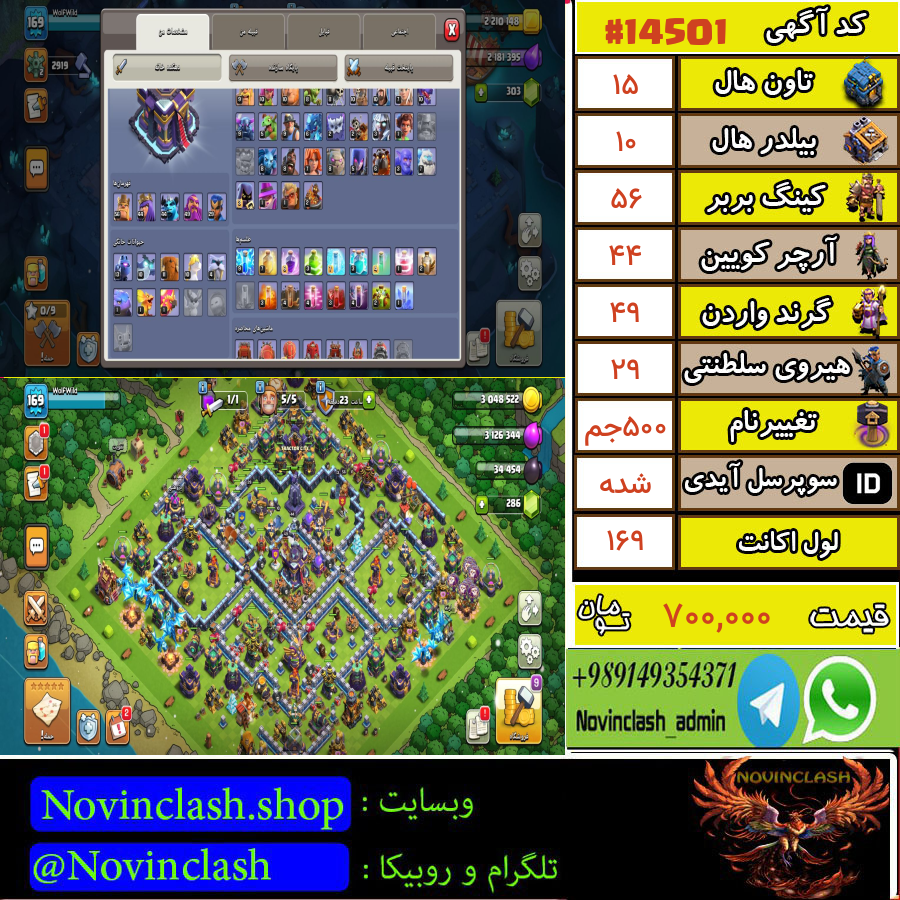 • خرید اکانت کلش اف کلنز تانهال 15 لول 169 کد 14501