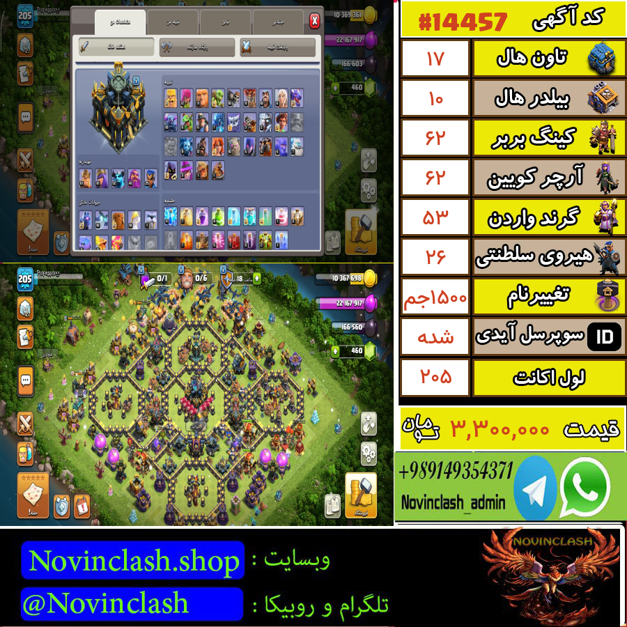 • خرید اکانت کلش اف کلنز تانهال 17 لول 205 کد 14457